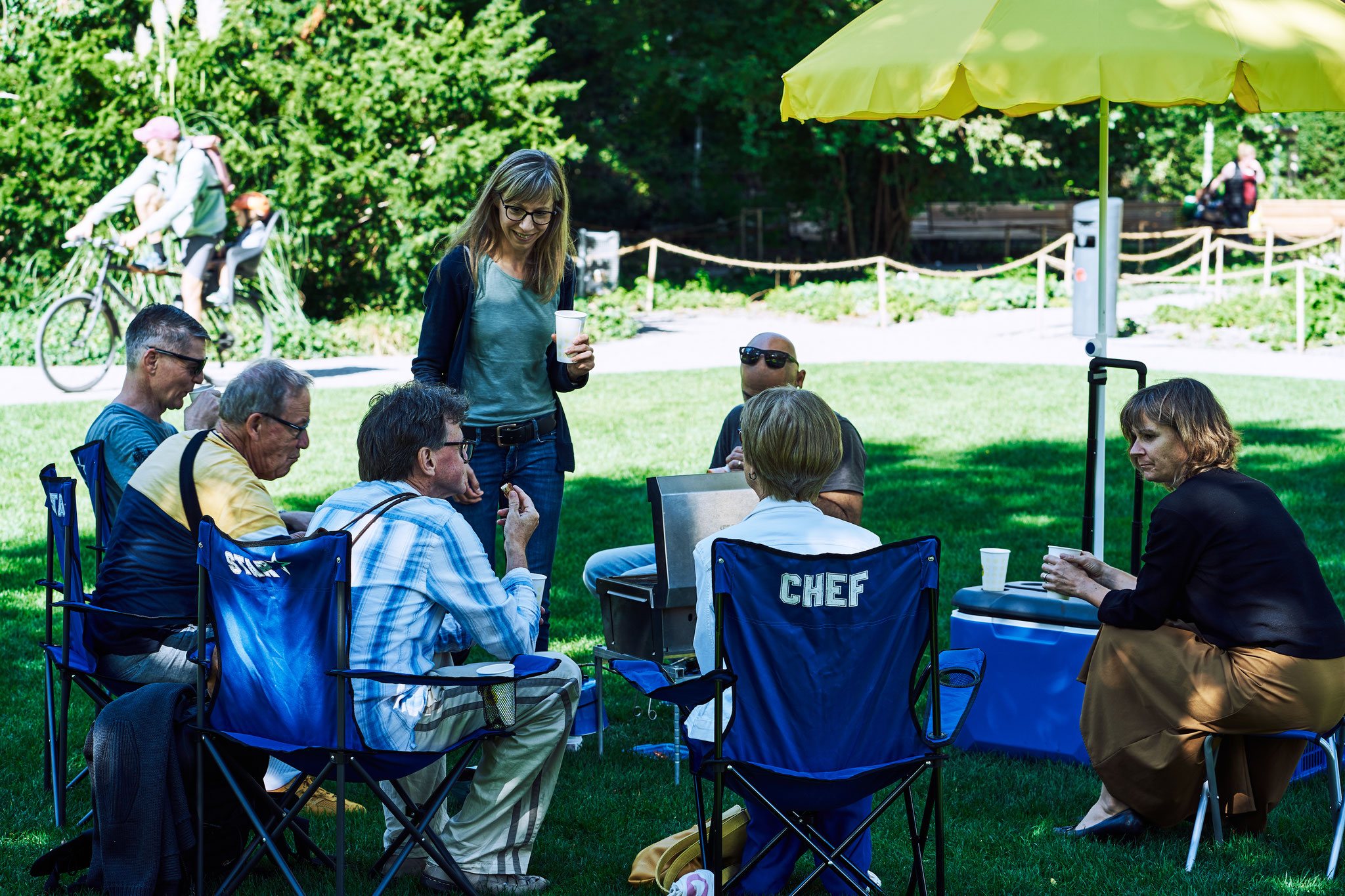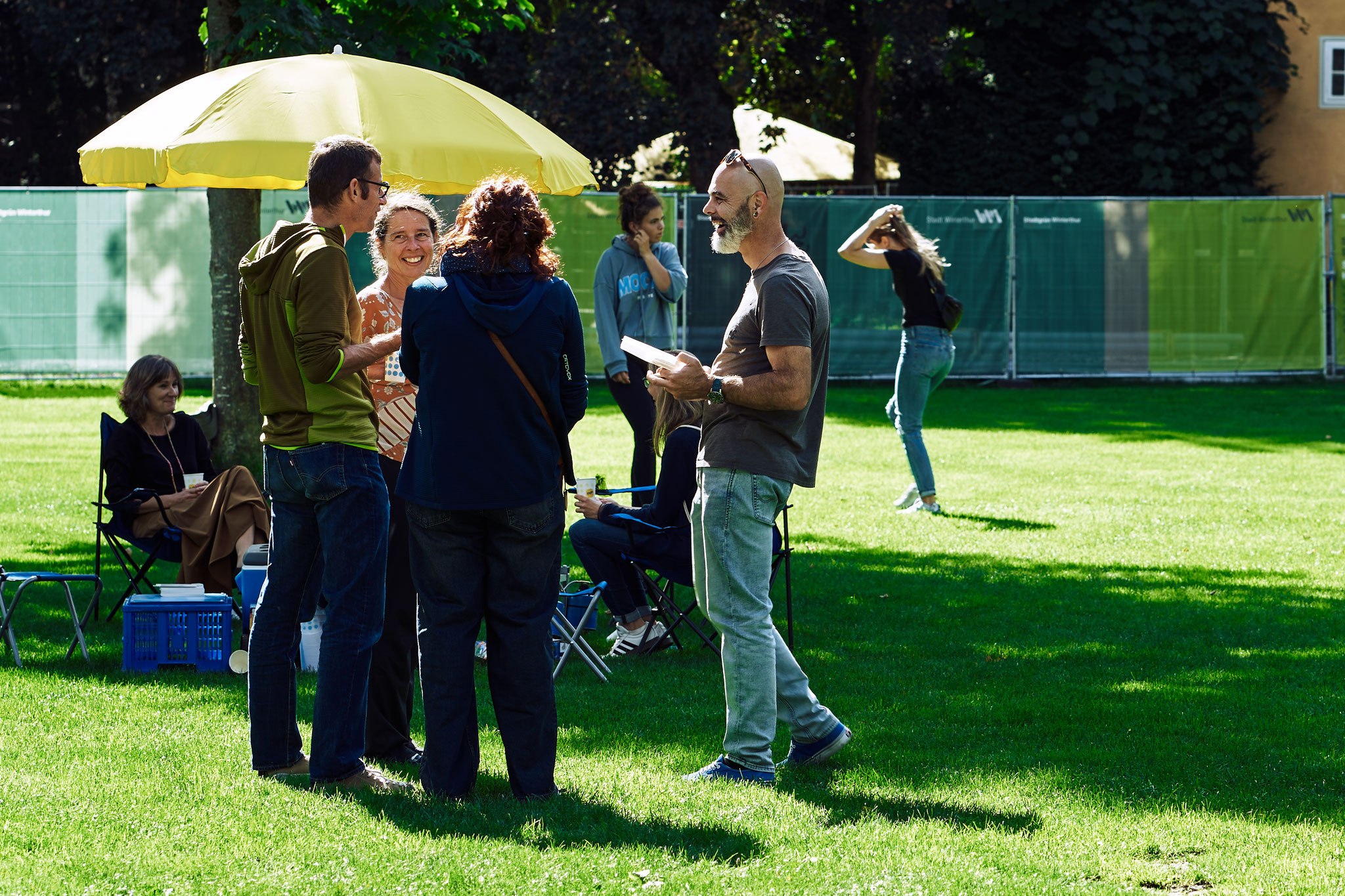 Treffpunkt am Lieblingsplatz Stadtgarten, beim gelben Sonnenschirm. Schön war's wieder im Austausch und mit Verpflegung von Sämis Grill.